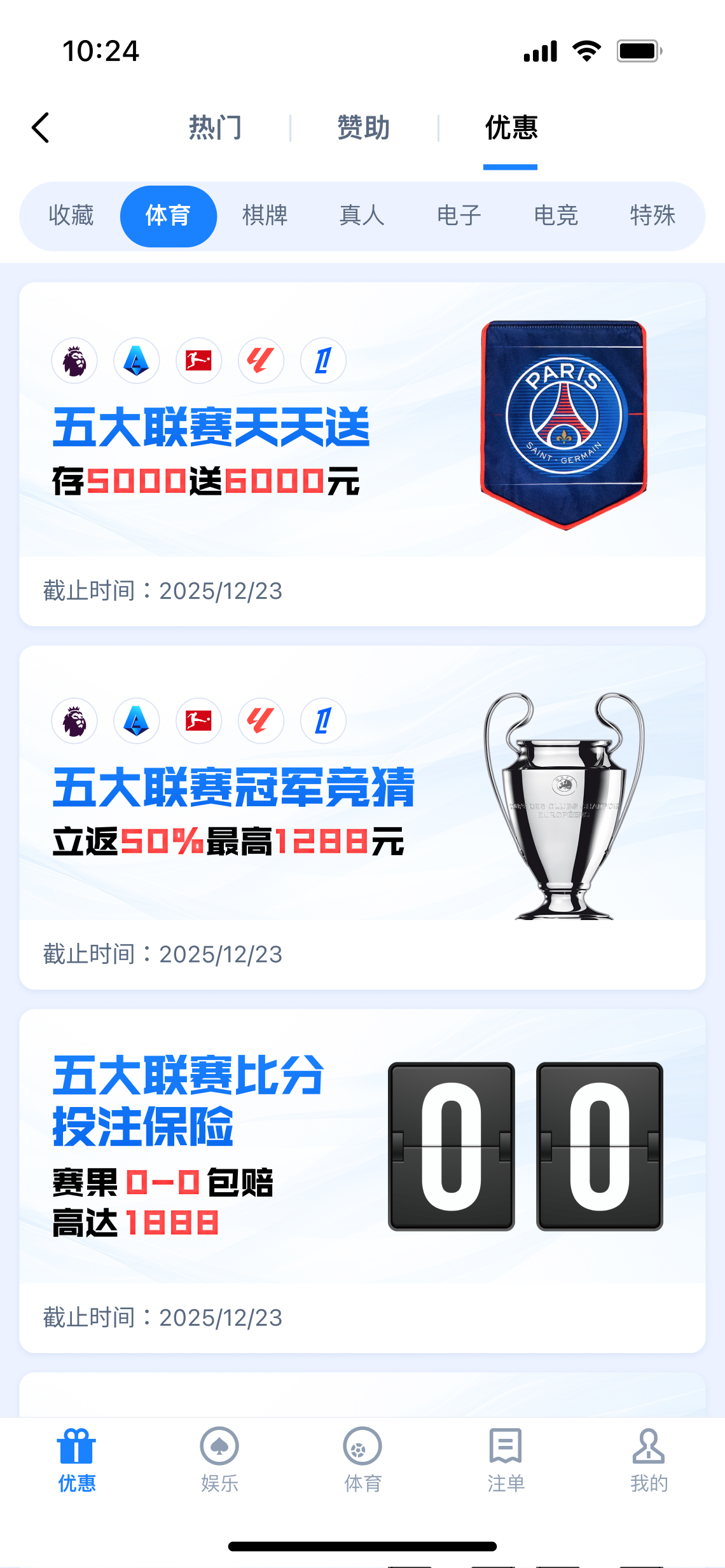 本活动投注截止至25/26欧洲冠军联赛八强,或NBA季后赛分区八强名单确认时,详情请查看官网活动页面。