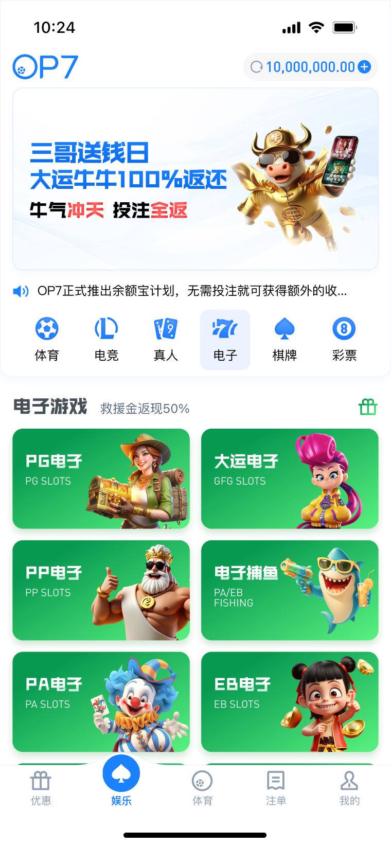 每周于【OP体育】【CME体育】【EB体育】场馆投注指定赛事,享指定场馆总负盈利包赔!本活动无需申请,赛事结束12小时后自动结算包赔彩金。详情请查看官网活动页面。